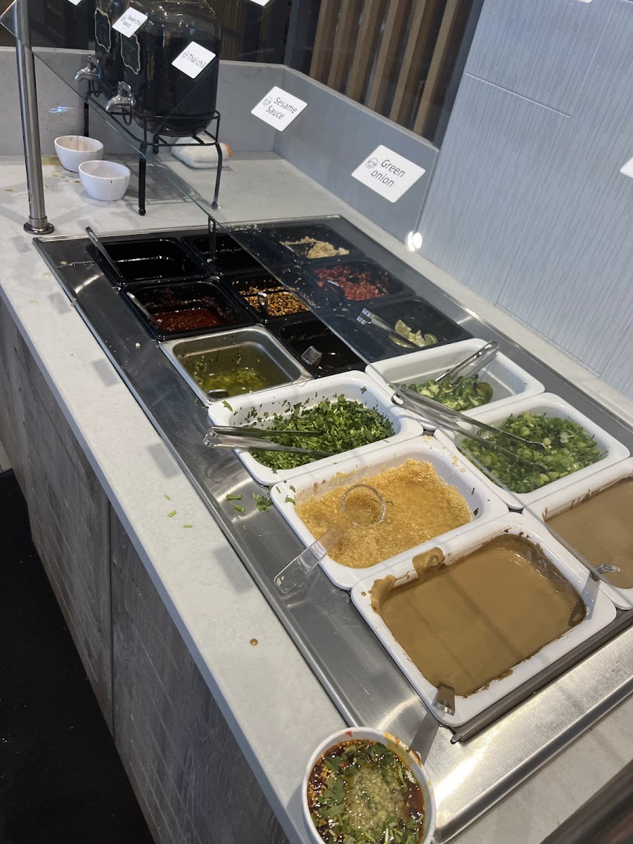 Vegetables, noodles, and tofu options balance the richness of the meat. I usually add lotus root, napa cabbage, and hand-pulled noodles, which soak up the broth beautifully. There’s also a self-serve sauce bar, which I’ve learned is essential to the overall experience. Mixing sesame paste, garlic, scallions, and chili oil lets you control the final flavor. Culinary experts from the James Beard Foundation often point out that customizable sauces increase perceived value in communal dining, and it’s easy to see why here.